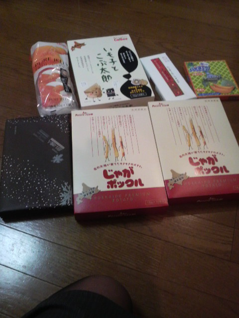 お土産のお菓子はじゃがポックルに限定の「いもことこぶ太郎」白い恋人♪