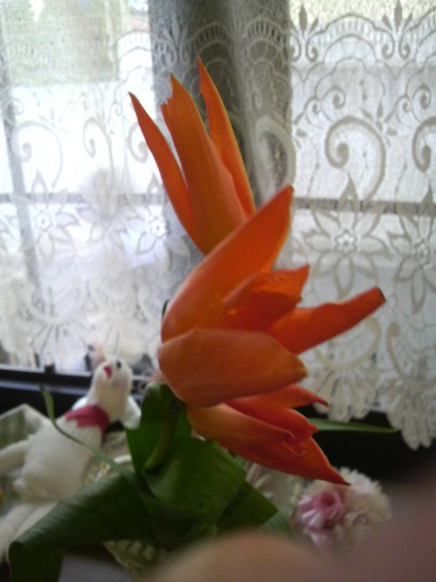 花と一緒に・・手に・・人参のかけらを3個・・おかれた・・(@0@)