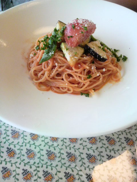 パスタはトマトソースでした。お野菜も豊富で美味しい!