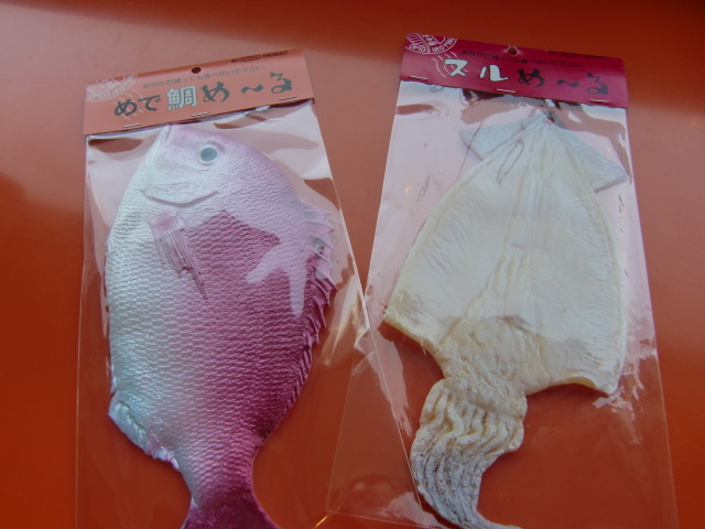 ドヤ顔で~(*^m^*)イカと鯛を手にご満悦!(^m^)