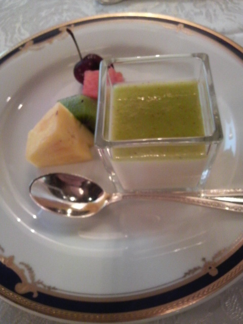 デザ-トはヨーグルトのブラマンジェ!キウイソース添え・・。