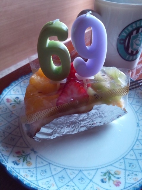 69歳!ショートケーキに69!ポップでキュートでロックなろうそくをたててみました(^3^)