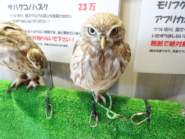店内には、鷹やオウム、いんこ、フクロウちゃんがいます♪