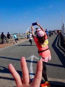 私よりハーフのタイムは速いので先にスタート地点をとっくに通り抜けたそろそろゴールをしているはずの妹の声が背後に・・