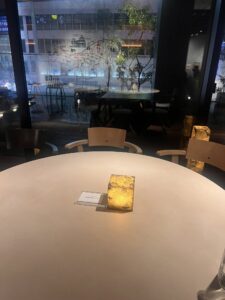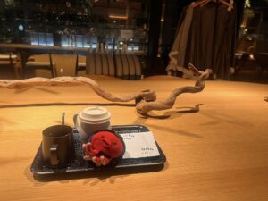 朝のOMOカフェの景色を楽しみ(朝と言っても冬は真っ暗です)
