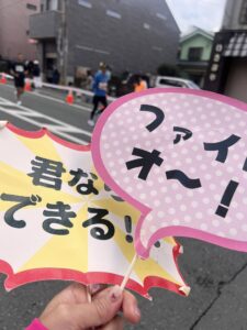 そうです走り終えたら応援に!フルを走る友人達を応援に