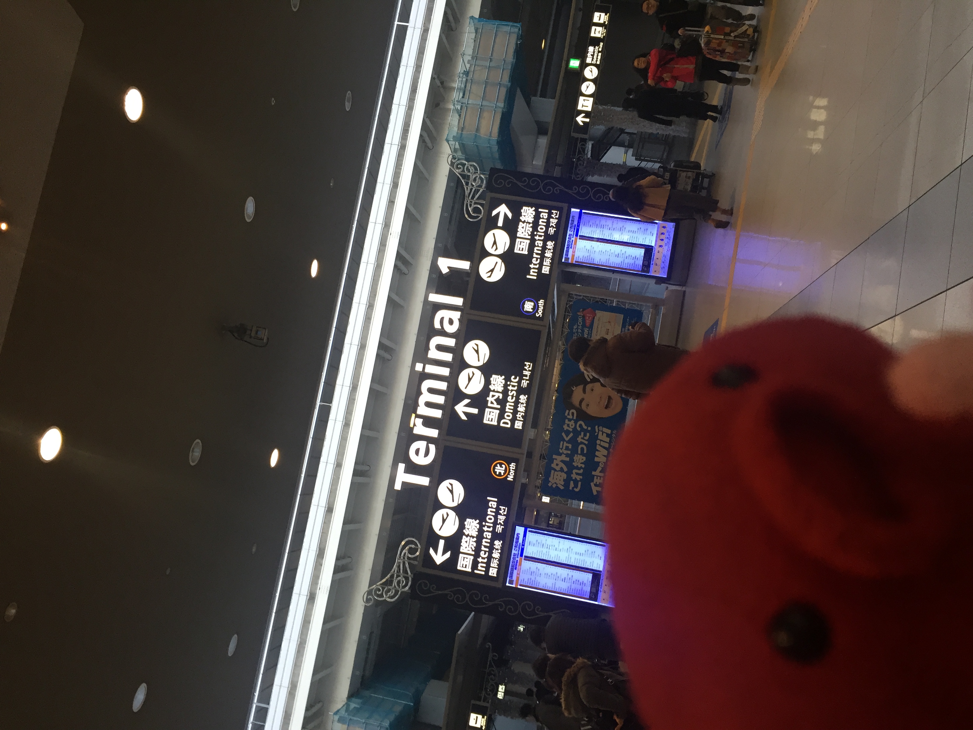 ブーツや、ダウンきたまんまのひとも空港やホテルにいっぱい