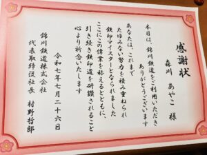 9週目鉄印帳マイスターカードが届いていました♡
