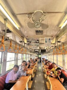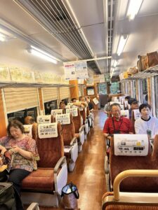 通常1時間ほどで着く沿線を2時間半かけてゆっくりゆっくり各駅への停車時間も長くとっていただいている貸切列車ということで