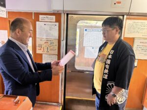 もちろん社長さん、課長さん、運転士さんにも車内で進呈しました