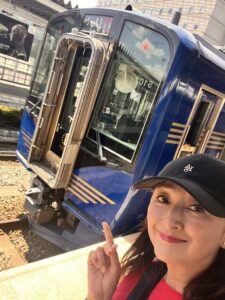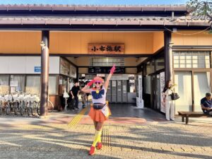 ということでお二人に記念に小布施駅をバックに撮影していただきました