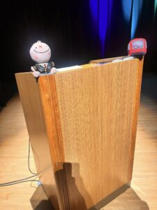 田代さんが器用に司会台に慣れた手つきで固定してくださいました