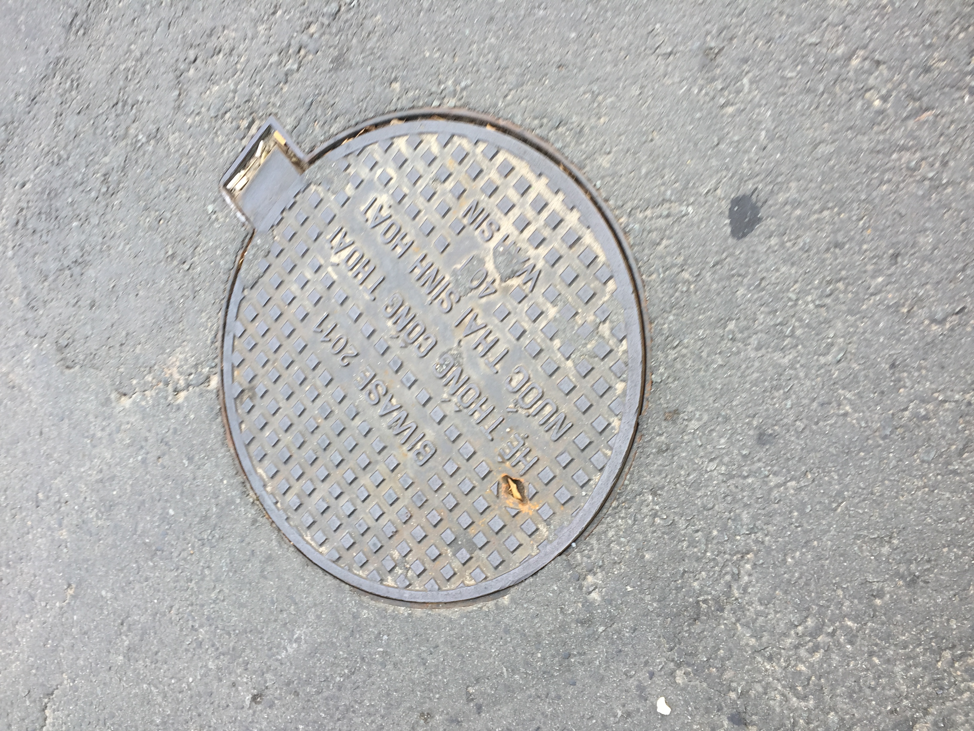 足元にはベトナムのマンホール