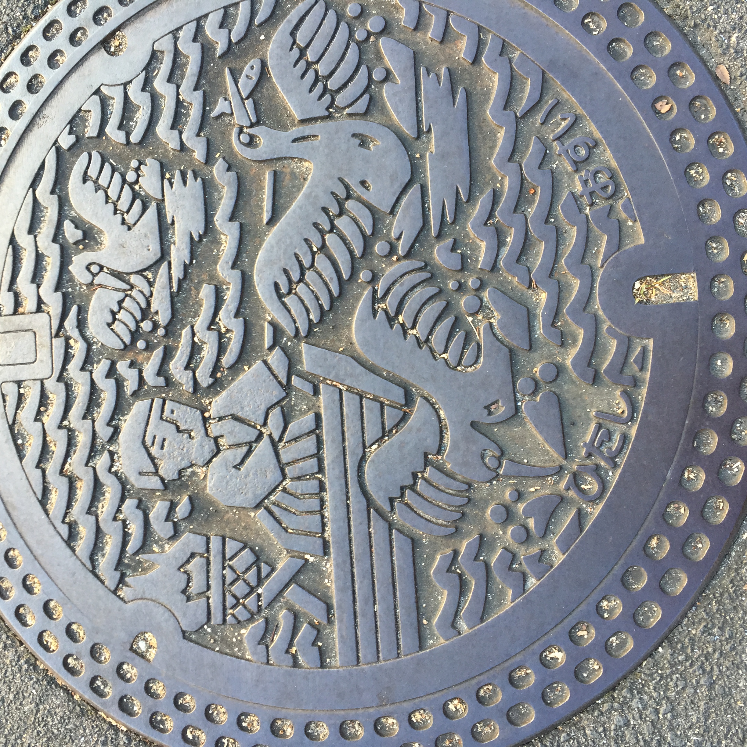 足元には鵜飼のマンホール