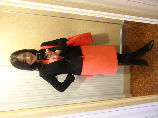 ポンジュース色の衣装で