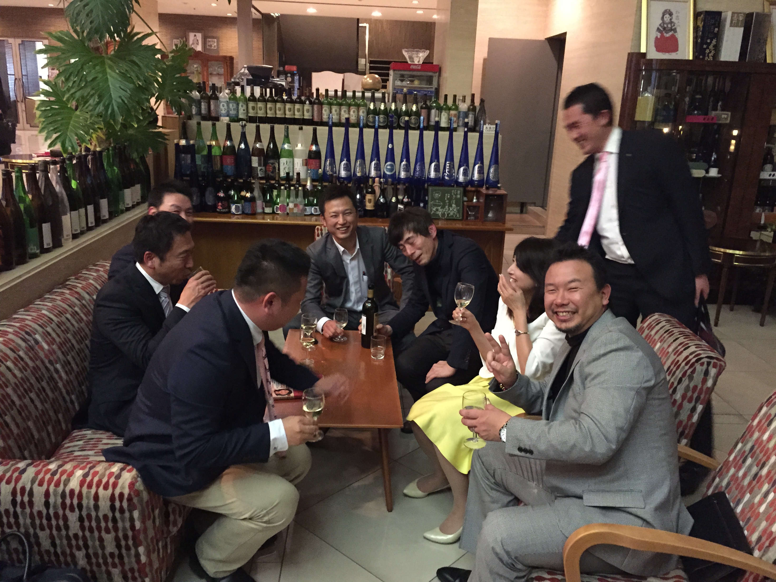懇親会二次会ではワインのボトルも登場し