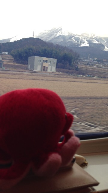 おお~!車窓から眺める景色も雪化粧した山が