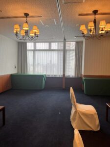 会場控室前窓からは大阪城が見えました