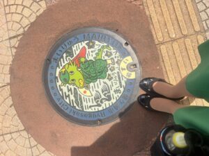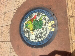 龍ヶ崎市のマンホールは駅前にまいりゅうくん