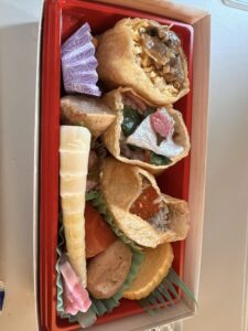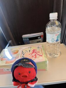 水にしとけよ!とタコ駅長もいっているとおり講演前ゆえ水でお弁当・・笑